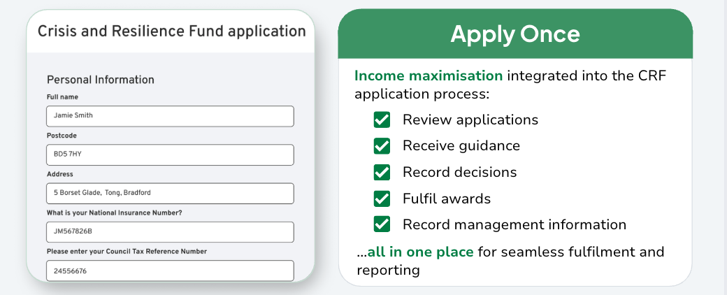 Use the Better Off Calculator's Apply Once to add income maximisation to your CRF process